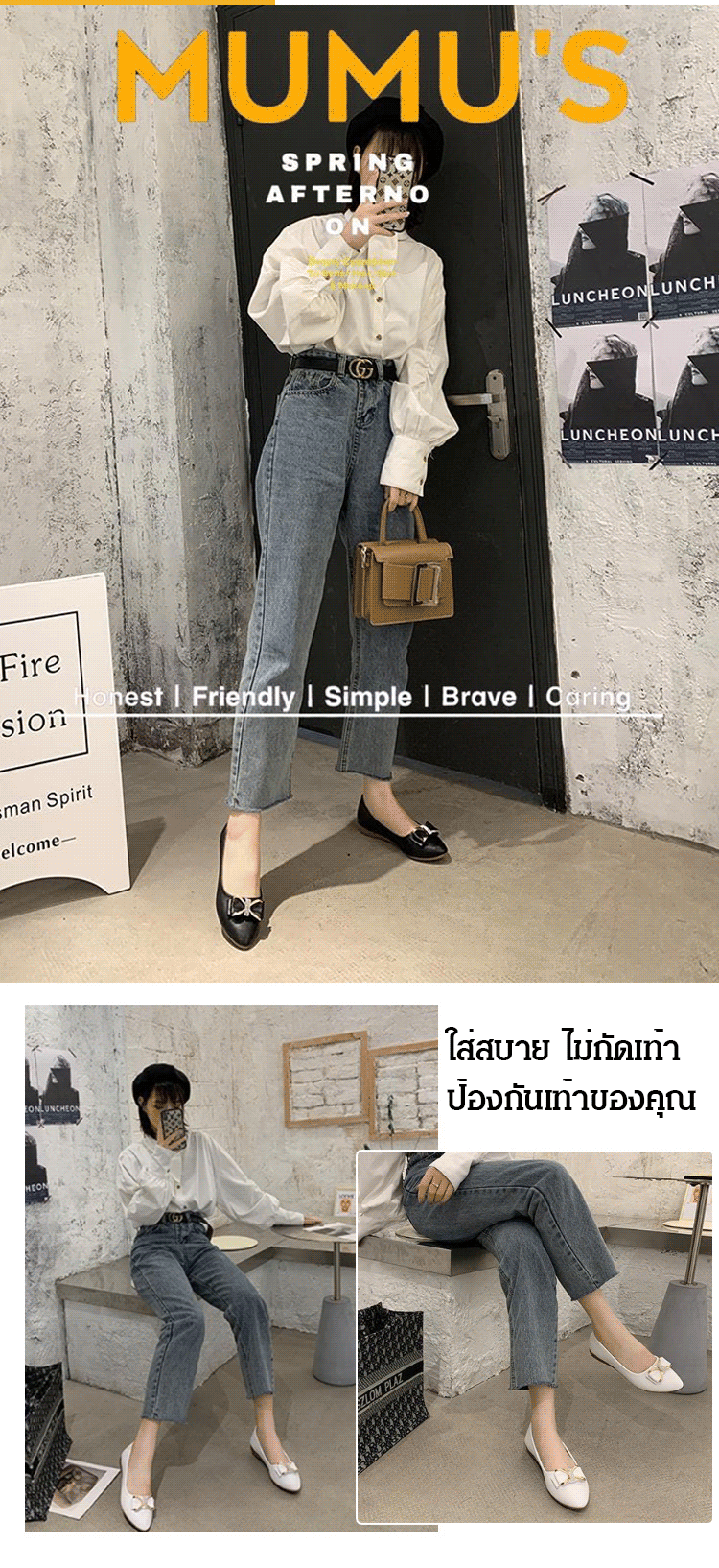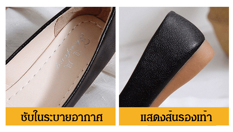 วัสดุหนังวัว พื้นรองเท้าแบน เดินไม่เมื่อย ไม่กัดเท้า ดีไซน์ติดโบว์ สวยงามลดอายุ